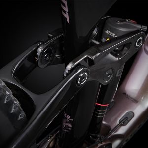 Mainframe and rear swingarm crafted with high-performance grade raw carbon fiber and custom resin that’s custom made in Giant’s own composite factory. Handcrafted monocoque construction makes it extremely lightweight, stiff and compliant (39 percent additional rear-end stiffness over previous generation).